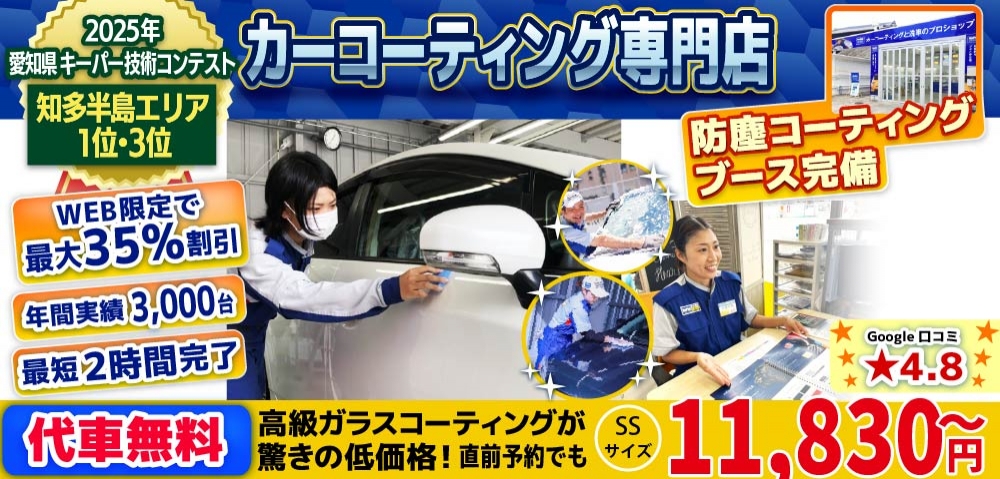 私達キーパープロショップは、半田市・常滑市・武豊町・美浜町・高浜市・碧南市・南知多町エリアのカーコーティング専門店として、