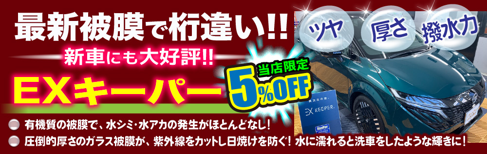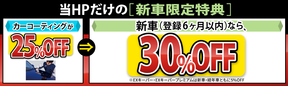 当HPをご覧になり、お電話・メールでご予約頂いたお客様限定で、コーティングの施工料金最大25%割引を実施中!また、他社にはないお得な特典もお客様にご提供しております。キーパーコーティングをお考えのお客様は、是非、当店にお任せください!